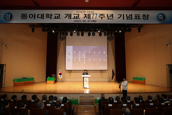 동아대학교(총장 이해우)는 ‘개교 제77주년 기념식’을 31일 오전 부민캠퍼스 다우홀에서 교직원과 학교법인 관계자, 동문, 표창 수상자 등이 참석한 가운데 개최했다고 밝혔다.