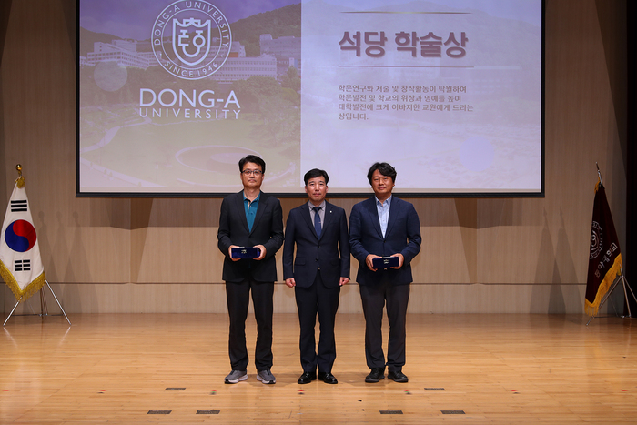 탁월한 연구업적으로 대학 발전에 이바지한 교원에게 시상하는 석당학술상은 장정환(전기공학과)·류민호(경영정보학과) 교수가 수상했다.