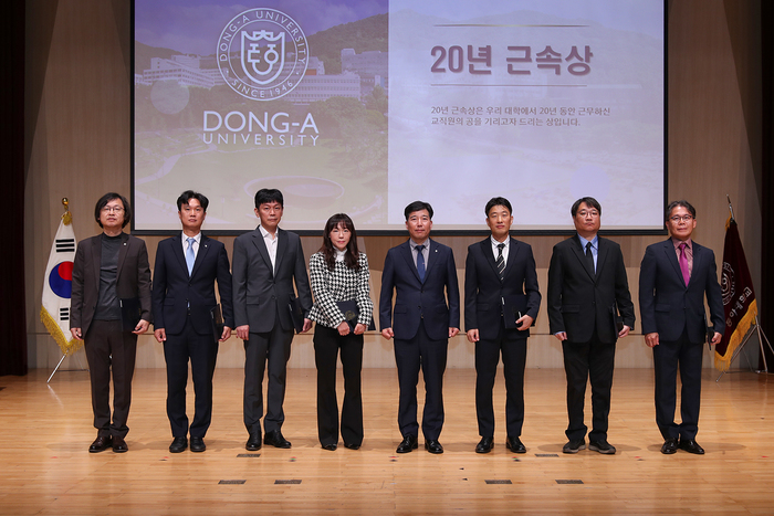 나서희(의예과) 교수 등 5명의 교원과 류윤아(보건진료소) 직원은 30년 근속상을, 박환태(중개의과학과) 교수 등 10명의 교원과 이인용(클린에너지융합부품소재사업단) 실장 등 7명의 직원은 20년 근속상을 받았다.
