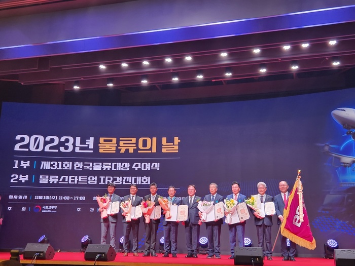 ▲ 2023 물류의 날, 한국물류대상 대통령 표창을 수상한 부산항만공사(참석자_진규호 경영본부장(가운데)) © 김중건