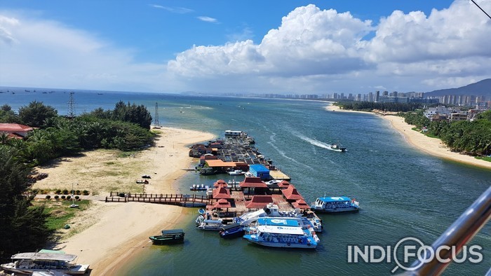 산야시에서 원숭이섬을 들어가기위해 케이블카를 타고 내려다본 모습이다. 이 바다에서 진주양식을 한다고 전했다. 사진/김영화 © 인디포커스