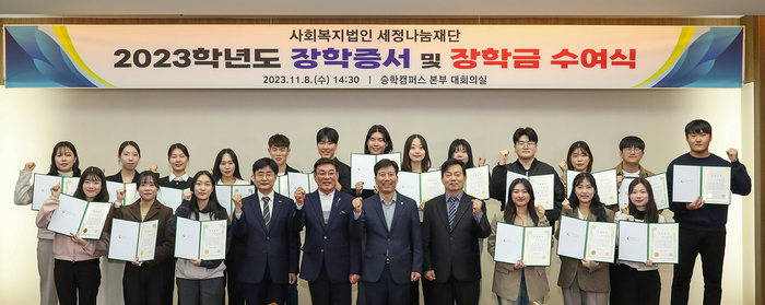동아대학교(총장 이해우)는 ‘2023학년도 세정나눔재단 장학금 수여식’을 개최했다고 8일 밝혔다.