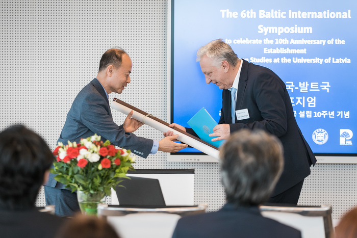 6일 라트비아대 과학관에서 개최된 「제6회 한국-발트국 국제 심포지엄」은 총 5부로, 발디스 셀긴스 라트비아대 부총장의 개회사를 시작으로 카스파르스 클라빈스 라트비아대 아시아학과장의 환영사, 이용재 부산대 도서관장의 축사, 이동규 주(駐)라트비아 한국대사의 기조강연 순으로 1부 개막식이 진행됐다.