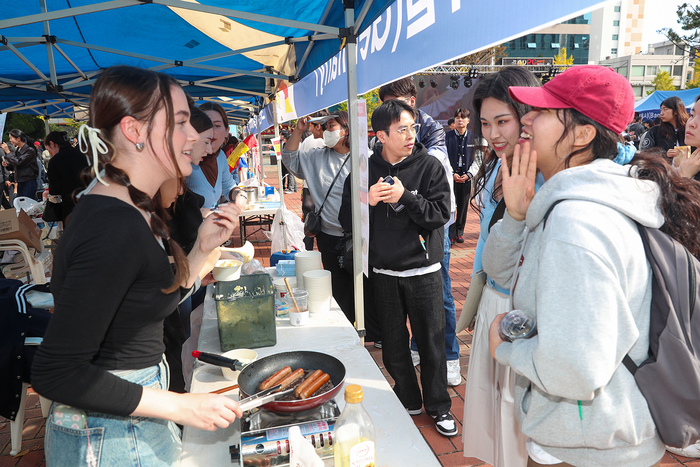 부민캠퍼스 중앙광장에서 지난 9일 열린 이날 행사에서 한국을 비롯 중국과 베트남, 일본, 대만, 인도네시아, 싱가포르, 미얀마, 모로코, 타지키스탄, 방글라데시, 필리핀, 러시아, 우즈베키스탄, 독일, 스페인, 아프리카 등 16개국 출신 유학생들이 부스를 마련해 국가별 전통음식 및 전통의상, 전통놀이 체험 등 문화를 교류하는 시간을 가졌다.