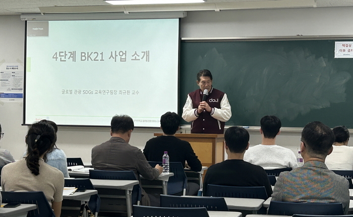 ▲ 글로벌 관광 SDGs 교육연구팀장 최규환 교수가 BK21사업에 대해 소개하고 있다. © 김중건