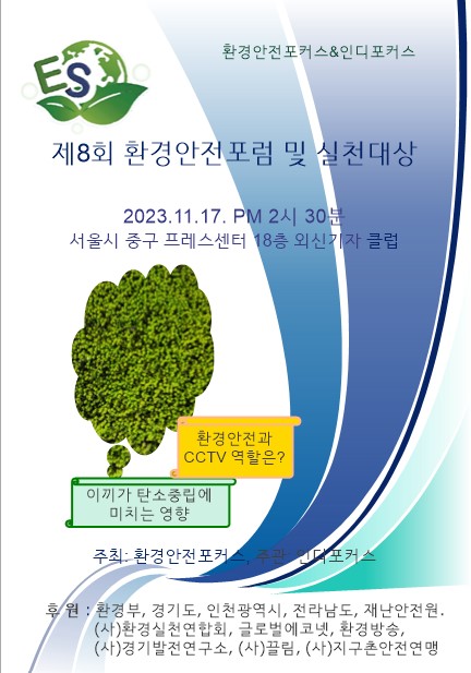 환경안전포커스가 주최하고 인디포커스가 주관한 이날 행사는 1부 포럼과 2부 시상으로 진행되며, 1부 환경부문에 “이끼가 탄소중립에 미치는 영향” 박재홍 코드오브네이처 대표가 안전부문에는 “환경안전과 CCTV의 역할?”이라는 주제로 발제는 지구촌안전연맹 채수창 대표가 한다.