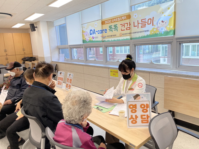 ‘DA-care 똑똑 건강나들이’는 지역 노인들의 건강 증진과 식습관 개선을 목표로 SPPB검사(신체 기능 지수) 및 악력·체성분·혈액·혈압 측정을 실시하고 식습관을 점검, 이를 바탕으로 1대 1 맞춤형 영양상담을 진행하는 스마트헬스케어 프로그램이다.