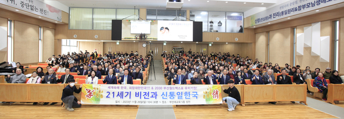 세계평화통일가정연합 부산대교회는 26일 오전 10시 30분 부산시 동구 초량동 부산가정연합 성전에서 '2030부산월드엑스포 유치를 위한 21세기 비전과 신통일한국'이라는 주제로 열린예배를 개최했다.