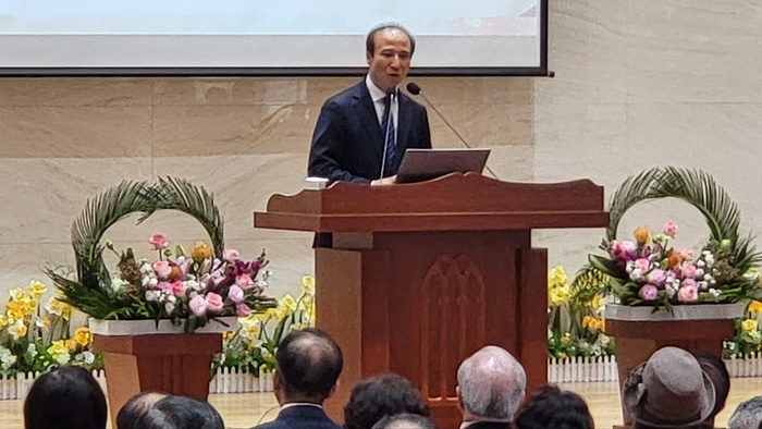 ▲ 보고기도를 하고 있는 장덕봉 부산대교회 대교회장 ©김중건