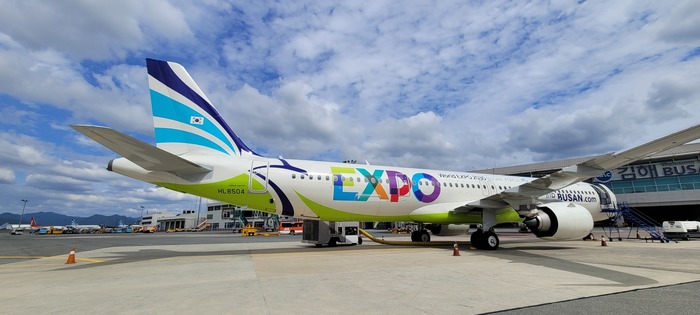 ▲ 에어부산 부산세계박람회 유치 염원 랩핑 항공기 © 김중건