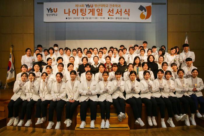 와이즈유 영산대학교(총장 부구욱)는 이날 오전 11시 양산캠퍼스 홍익2관에서 나이팅게일 선서식을 진행했다. 이 선서식은 간호학의 토대를 다진 플로렌스 나이팅게일의 정신을 기려 간호사의 윤리와 원칙을 맹세하는 간호학과만의 전통적인 행사다.