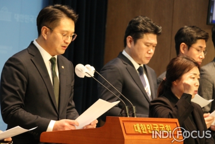 ▲ 지난 5일 부산 영도 출신인 김의성 전 대통령실 행정관과 더불어민주당 전국청년위원회가 국회 소통관에서 청년 인재 육성 발굴 촉구 기자회견을 열었다. 사진=김은호 기자 © 인디포커스