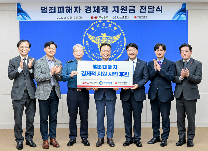 BNK부산은행(은행장 방성빈)은 12일 오후, 부산경찰청에서 부산사회복지공동모금회와 함께 ‘범죄 피해자 경제적 지원 사업’ 후원금 전달식을 가졌다고 밝혔다.