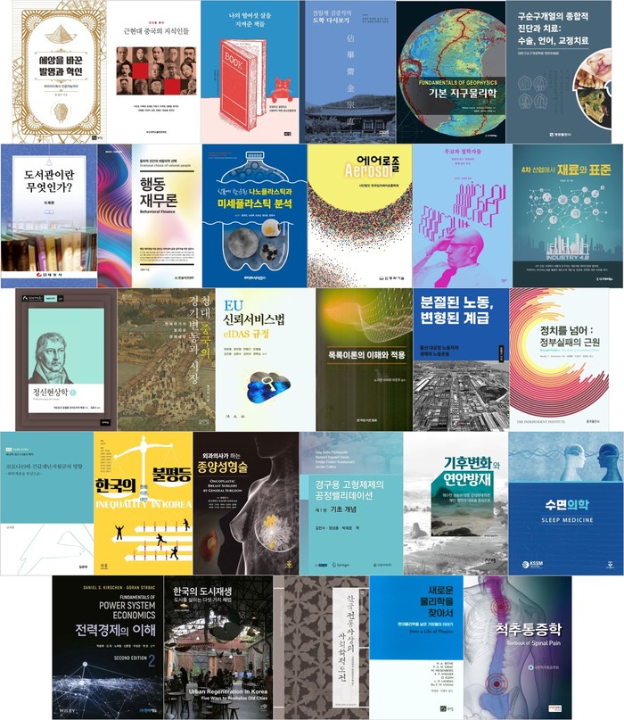 2023년 세종도서 ‘학술부문’에는 △한문학과 정출헌 교수 공저서 『점필재 김종직의 도학 다시 보기』 △지구과학교육과 임형래 교수 공역서 『기본 지구물리학』 △치의학과 김성식, 김성훈, 김용덕, 황대석 교수 공저서 『구순구개열의 종합적 진단과 치료』 △문헌정보학과 이제환 교수 저서 『도서관이란 무엇인가?』 △경영학과 고광수 교수 저서 『행동 재무론』 △바이오소재과학과 황대연, 서성백 교수, 약학과 정영석 교수, 식품영양학과 이희섭 교수 공역서 『식품에 함유된 나노플라스틱과 미세플라스틱 분석』 △기계공학부 이동근 교수 공저서 『에어로졸』 △유아교육과 김은주 교수, 철학과 정대훈 교수 공저서 『푸코와 철학자들』 △재료공학부 이희수, 이정우, 리오이룬, 이욱진, 이제인, 이승기 교수, 통계학과 최용석 교수 공저서 『4차 산업에서 재료와 표준』 등 9종이 선정됐다.