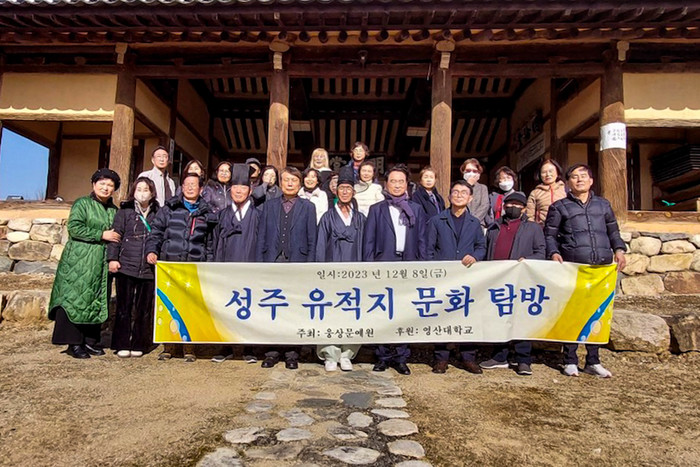 ▲ 와이즈유 영산대학교 자유전공학부 부남철 명예교수가 최근 경북 성주군의 향교와 서원에서 탐방교육을 진행하고 기념촬영을 하고 있다 © 김중건