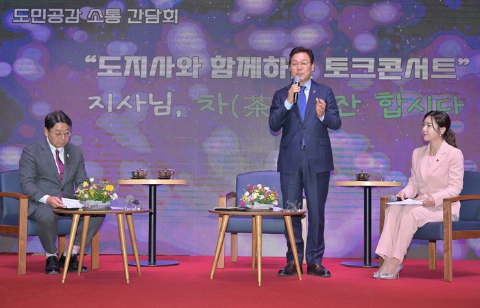 박완수 경남도지사, 김해에서도 도민 현장 소통 이어가19일 도민과 함께하는 토크콘서트에 김해시민 150여 명 참석, 경남도, 지역 발전을 위한 다양한 도민 의견 정책 반영 노력경남도(도지사 박완수)는 19일 ‘도지사-도민과 함께하는 토크콘서트’에 참석해 김해지역 도민들과 지역 현안과 도정에 대해 직접 소통하는 시간을 가졌다.