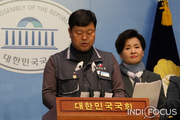 ▲ 불어민주당 이수진 의원(국회 환경노동위원회 더불어민주당 간사)과 한국노총은 12월 27일 오후 국회소통관에서 기자회견을 열고 있다. 사진/김은호 기자 © 인디포커스