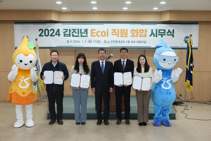 인천환경공단은 2일 공단 대회의실에서 직원들과 ‘대한민국 1위 환경공기업 달성, 최상의 시민 환경서비스 제공’을 위해 새해 힘찬 다짐을 하는 시무식을 개최하였다.