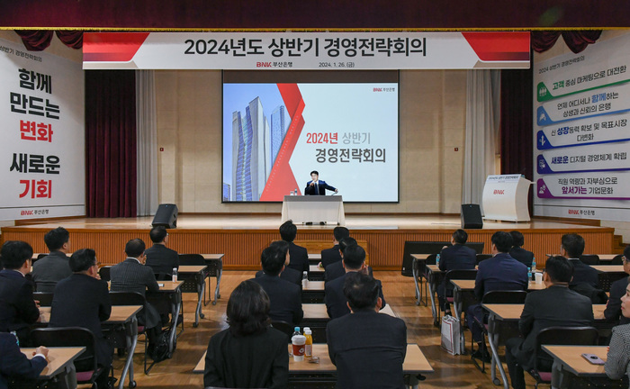 부산은행은 26일 오후, 부산은행 기장 연수원에서 경영진과 부실점장 등 임직원 250여명이 참석한 가운데 ‘2024년 상반기 경영전략회의’를 열고 이같은 내용을 논의했다고 밝혔다.
