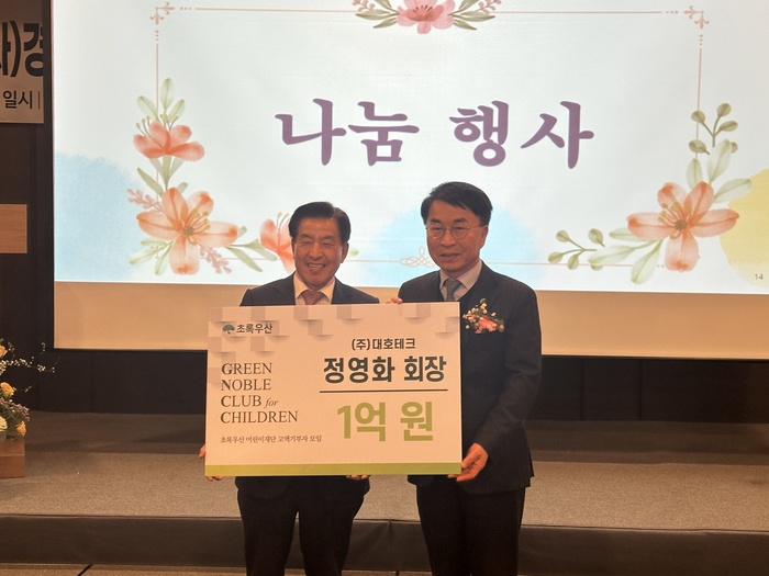 ▲ ㈜창원중장비에이엠센터(대표이사 손종호)는 31일, 초록우산(경남지역본부장 조유진)에 인재양성지원사업을 위해 2,000만 원을 후원했다. /초록우산 © 김중건