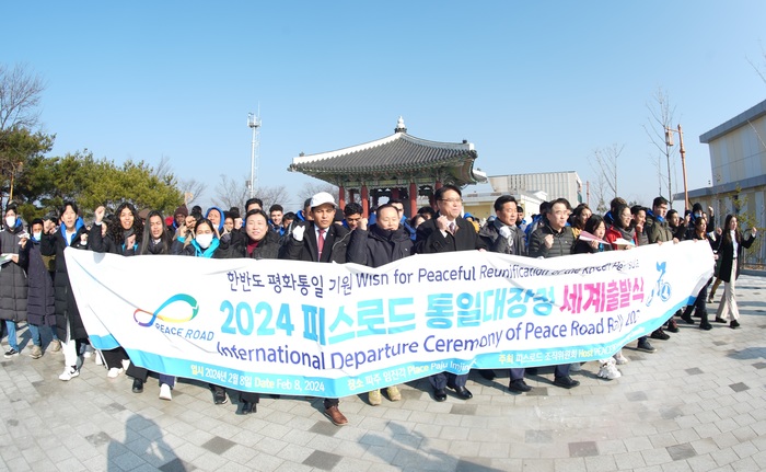 북한의 미사일 발사와 포사격, 그리고 대남 기구 정리에 따른 한반도 전쟁 가능성을 우려하는 목소리가 커지고 있는 이때, 한반도 평화와 세계평화를 염원하는 세계인들이 함께하는 ‘2024 피스로드 통일대장정 세계출정식’이 2월 8일 오전 10시부터 경기도 파주시에 위치한 임진각에서 각계 대표와 세계대학생 300여 명이 참석한 가운데 개최됐다.
