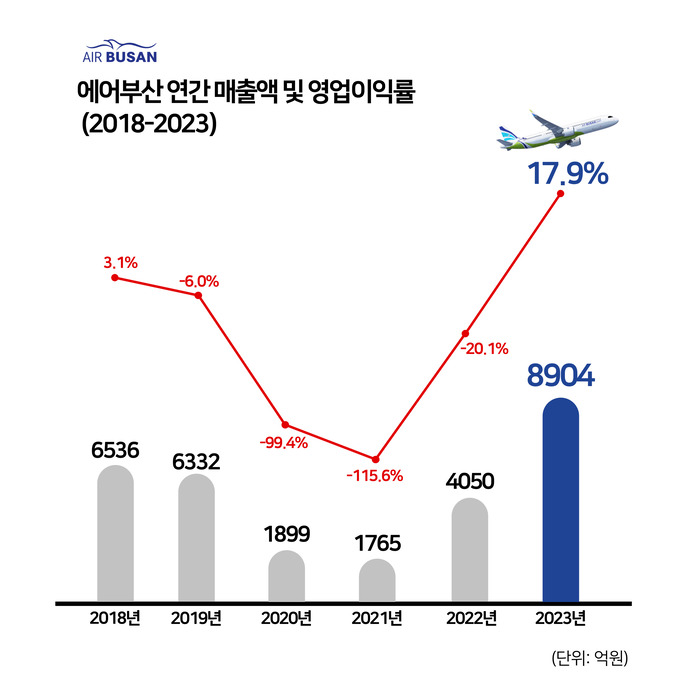 “역대급 고공비행!” 에어부산, 지난해 매출액 8904억 원·영업이익 1598억 원 기록하며 역대 최대 실적 달성