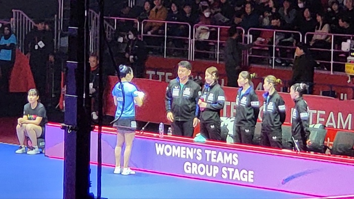 여자 대표팀도 남자와 마찬가지로 3명의 선수가 한 게임도 내주지 않고 '완벽승'을 거뒀다. 조별예선 5조의 한국(5위)은 신유빈(대한항공), 전지희(미래에셋증권), 이시온(삼성생명)으로 전열을 짜 말레이시아(28위)를 상대했다. 신유빈과 전지희가 차례로 호잉, 리네 카렌을 각각 3-0(11-2 11-9 11-4), 3-0(11-4 11-7 11-3)으로 물리쳤다. 이시온이 창리샨을 3-0(11-7 11-1 11-3)으로 제압하며 승리를 이어갔다.