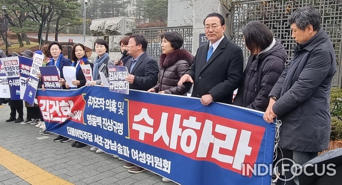 더불어민주당 서초, 강남, 송파 이른바 ‘강남 3구’ 여성위원회는 오전 11시 대검찰청 앞에서 ‘김건희 여사 주가조작 의혹 및 명품백 진상규명을 위한 수사 촉구 기자회견’을 개최했다.