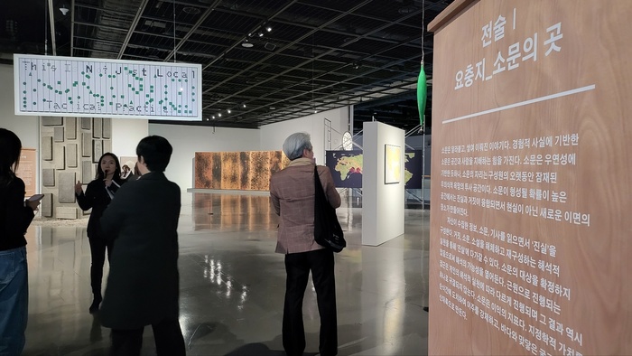 전시의 소주제는 ‘요충지_ 소문의 곳’, ‘체화된 기억’ ‘미래로의 연결망’ ‘그 풍경은 늘 습관적으로 하듯히’ ‘불안-조율-공존’ ‘경계감각’ ‘복수의 목소리로 이야기한다’ 등 7개다.