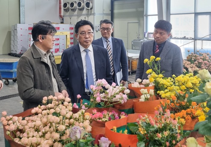 한국농수산식품유통공사 김춘진 사장은 20일 전주시 소재 화훼 수출전문업체인 농업회사법인 ㈜로즈피아(대표 정화영)에 방문해 현장의 목소리를 경청하며 화훼류 수출확대 방안을 모색했다.