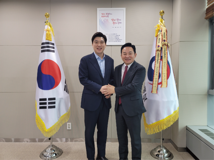 ▲ 박진호 국민의힘 김포갑 국회의원 후보가 작년 국민의힘 김포갑 당협위원장 시절 원희룡 국토교통부 장관을 만나 지하철 2호선 김포 연장을 논의했다. (출처 = 박진호 국회의원 후보 캠프) ©