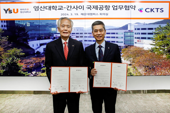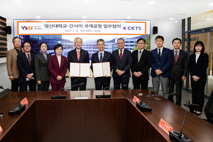 영산대 재학생, 일본 간사이공항 CKTS 인턴근무 추진간사이공항 종합지상업무회사 ‘CKTS’와 협약… 이르면 9월부터 인턴영산대가 호텔관광대학 항공관광학과 등 환대(Hospitality)산업관련 전공학생의 해외진출을 돕고자 발 벗고 나섰다. 와이즈유 영산대학교(총장 부구욱)는 지난 19일 해운대캠퍼스에서 일본 간사이공항 종합지상업무회사인 CKTS(사장 카토 아츠시, 加藤 篤志)와 협약을 체결했다.