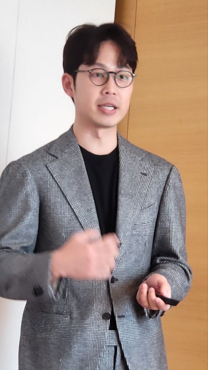 ![]() ▲ 정석호 아트부산 이사가 2024아트부산 개막과 참가 국내외 걀러리, 프로그램을 소개하고 있다 © 김중건 |