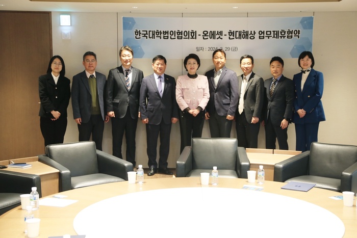 한국대학법인협의회(회장 노찬용, 영산대 이사장)는 지난달 29일 서울 종로구 현대해상 본사 사옥에서 현대해상, 온에셋㈜과 3자간 업무협약을 체결했다.