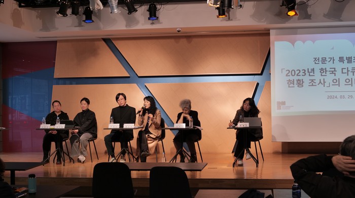 3월 29일(금) 열린 ‘‘2023년 한국 다큐멘터리 산업 현황 조사’의 의미와 시사점’ 특별좌담회는 DMZ국제다큐멘터리영화제 허은광 사무국장의 사회로 진행되었으며, 해당 연구를 수행한 독립미디어연구소의 박채은 공동대표의 연구결과 발표 이후 패널들의 토론이 이어졌다. 특별좌담회 패널로는 김옥영 ㈜스토리온 대표, 김선아 프로듀서, 이종은 감독(이상 KDN 한국다큐멘터리네트워크 공동대표), 박소현 감독, 이원우 감독(이상 한국독립영화협회)이 참석했다.