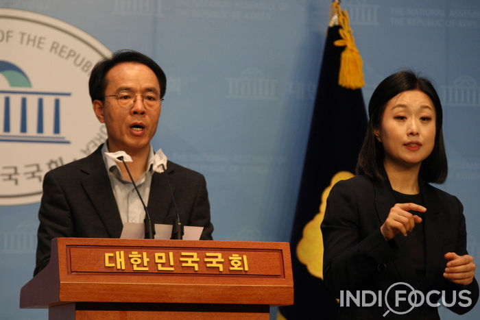 ▲ 새로운미래 이동영 선임대변인이 4월 3일(수) 오전 국회 소통관에서 브리핑을 통해 "새로운미래는 제주 4.3항쟁 76주년을 맞아 그날의 비극과 아픔을 기억하고 추모한다고 말했다. 사진=김은호 기자 © 인디포커스