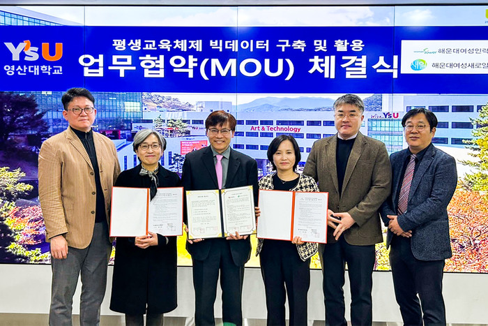 와이즈유 영산대학교(총장 부구욱) 미래융합대학이 최근 해운대여성인력개발센터, 해운대여성새로일하기센터(이하 해운대새일센터)와 협약을 체결했다.