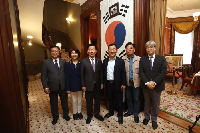 이날 방문에는 더불어민주당 안규백·윤호중·한정애·송갑석 의원과 국민의힘 주호영 의원, 김교식 의장비서실장, 최만영 공보수석비서관, 정운진 외교특임대사, 황승기 국제국장, 조형국 언론비서관 등이 함께 했다.
