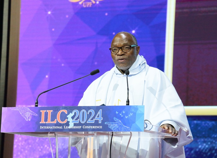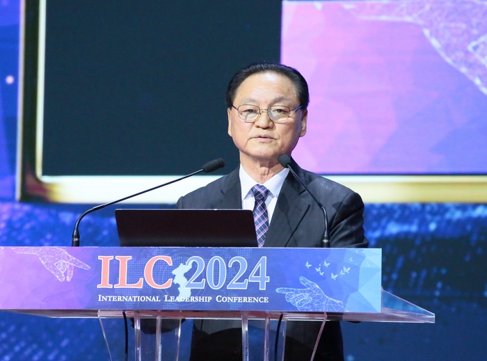 ![]() ▲ 2024 국제지도자회의(ILC)에서 축사하는 송용천 세계평화통일가정연합 세계회장/UPF © 김중건 |