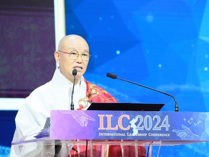 ![]() ▲ 2024 국제지도자회의(ILC)에서 축사하는 상진스님 한국불교태고종 총무원장/UPF © 김중건 |