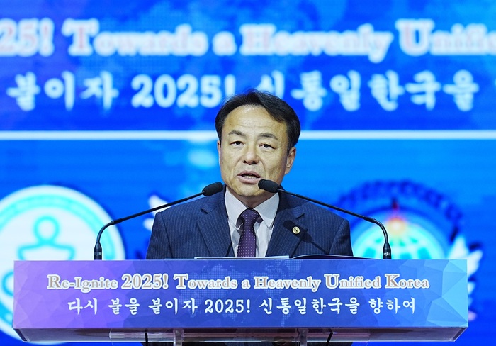 ![]() ▲ 다시 불을 붙이자(Re-Ignite) 2025! 신통일한국을 향하여’ 콘퍼런스에서 대회사하는 이현영 한국종교협의회 회장/UPF © 김중건 |