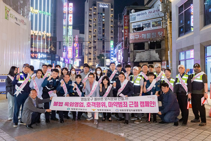 영등포구(구청장 최호권)가 영등포동 상권 일대에서 불법 옥외영업과 호객행위를 근절하고, 마약범죄 장소 제공에 관한 처벌 규정을 알리는 ‘민·관·경 합동 캠페인을 실시’했다고 밝혔다.