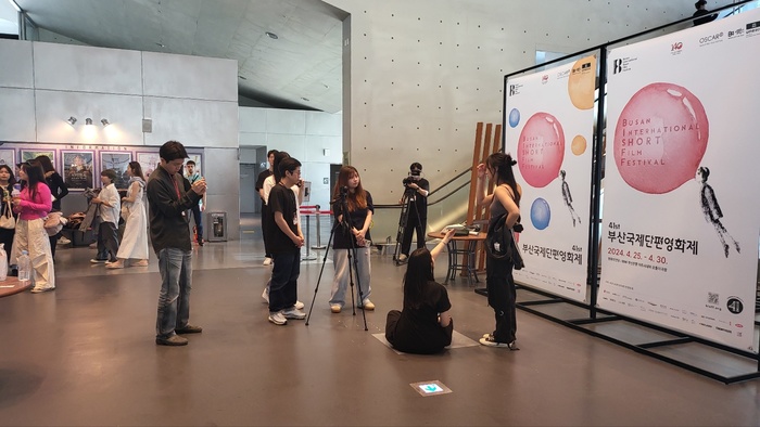 ▲ 중국 유학생들이 부산국제단편영화제에서 영화제작 체험을 하고 있다 ©김중건
