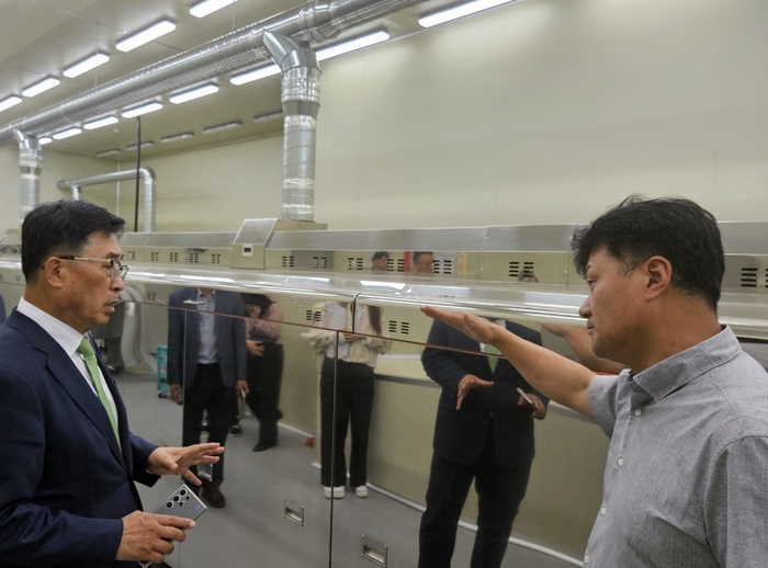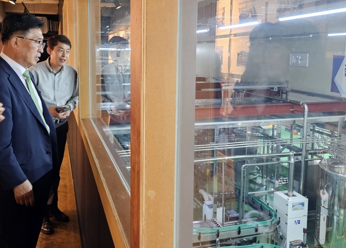 ▲ ㈜한라산 현장 방문. 한국농수산식품유통공사 김춘진 사장(좌측) © 인디포커스