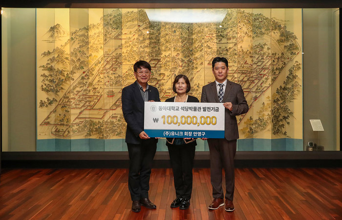 동아대학교(총장 이해우)는 안영구 ㈜유니크 대표이사 회장이 석당박물관 발전기금 1억 원을 쾌척했다고 밝혔다.