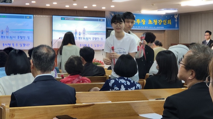강연에 앞서 최효승 부산 강서구 UPF 지부장의 평화기도와 북부산가정교희 성가대의 ‘어머니의 기도’ 노래 합창과 나현재 가수의 ‘봄처녀’ ‘할무니’ 노래 공연이 이어졌다. <저작권자 ⓒ 인디포커스 무단전재 및 재배포 금지>