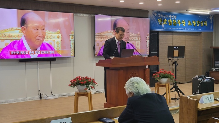 안 본부장은 가정연합과 통일그룹에서 대외협력본부장을 맡아 생전 문선명 총재를 지근에서 보좌하면서 지켜본 문 총재의 일화를 생생하게 소개했다. 그는 평양에서 골프대회를 개최하면서 있었던 에피소드와 북한을 방문한 노무현 대통령이 가정연합이 설립한 평화자동차 공장을 둘러 본 이야기 등 남북통일에 대한 활동을 소개했다.