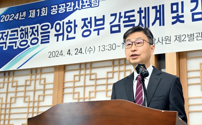 ▲ 감사연구원은 지난달 중순 한국행정학회와 공동으로 ‘적극행정을 위한 정부 감독체계 및 감사 관계 법령 개선 방향’이란 주제로 2024년도 제1회 공공감사포럼을 개최했다.(출처 = 감사원) ©
