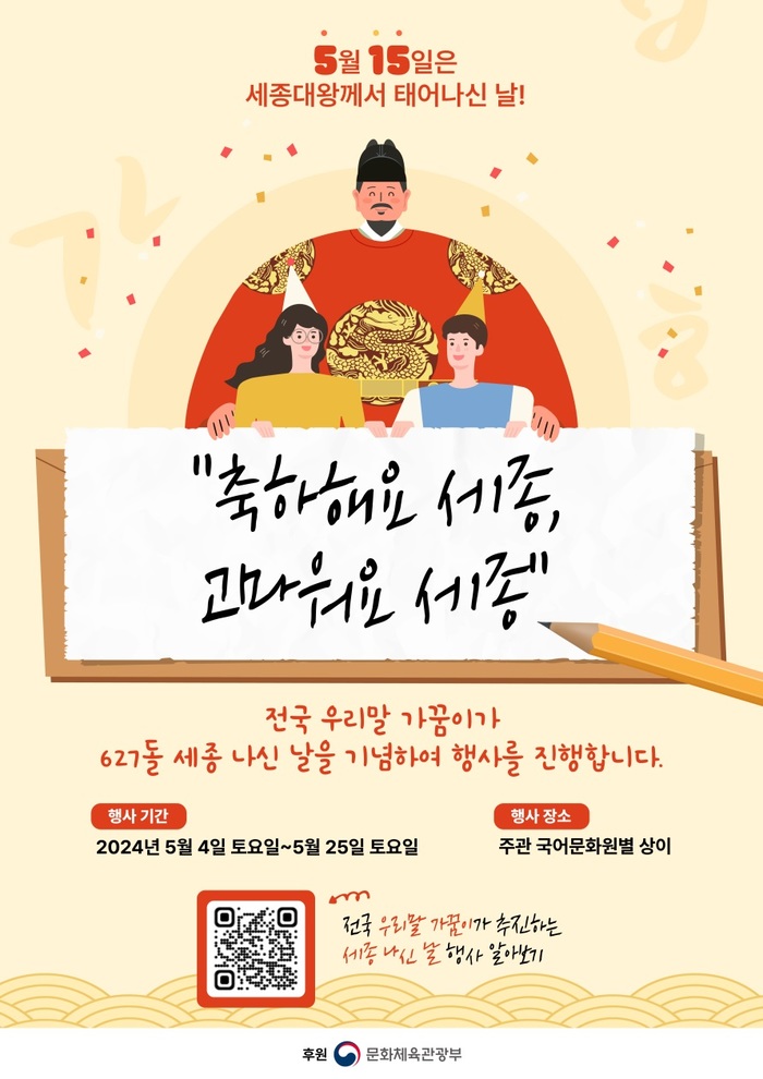 이날 행사에 참여하는 시민들은 ‘훈민정음’ 서문을 통한 한글의 창제 목적과 단어의 변천 알아보기, ‘훈민정음’ 서문 관련 문제 풀기, 가정의 달을 맞아 사랑하는 사람에게 우리말로 짧은 편지를 남기는 ‘괴는 마음’ 쓰기 활동에 참여할 수 있다.