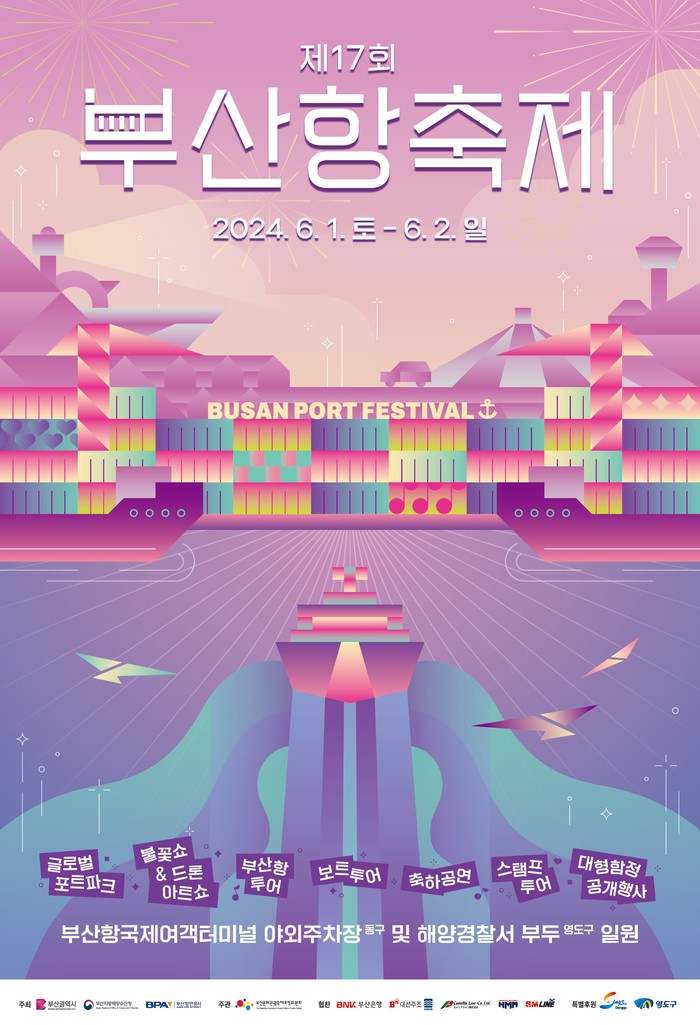 제29회 바다의 날(5.31.) 기념 - 부산항에서 즐기자!‘제17회 부산항 축제’개최6월 1일부터 2일까지 부산항 국제여객터미널과 북항 친수공원, 영도 해양경찰서 부두 등에서 드론쇼 등부산항만공사(BPA, 사장 강준석)는 바다의 날(5월 31일)을 맞아 부산시(시장 박형준), 부산지방해양수산청(청장 류재형)과 함께 국내 대표 항만축제인 ‘제17회 부산항축제’를 6월 1일(토)부터 2일(일)까지 부산항 국제여객터미널과 북항 친수공원, 영도 해양경찰서 부두 일원에서 개최한다고 밝혔다.